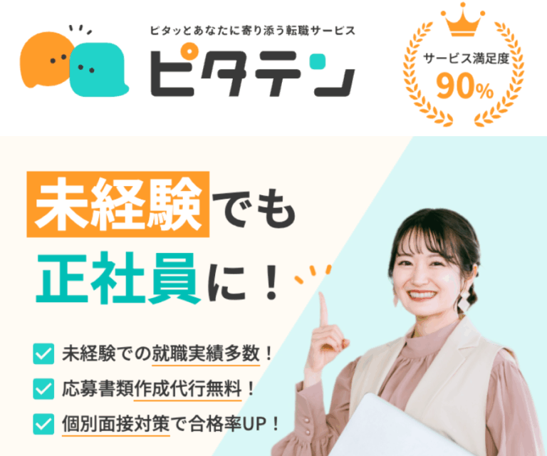 ピタテンは、20代のフリーターから正社員への転職支援に特化したサービスです。※在学中・中退の方は対象外